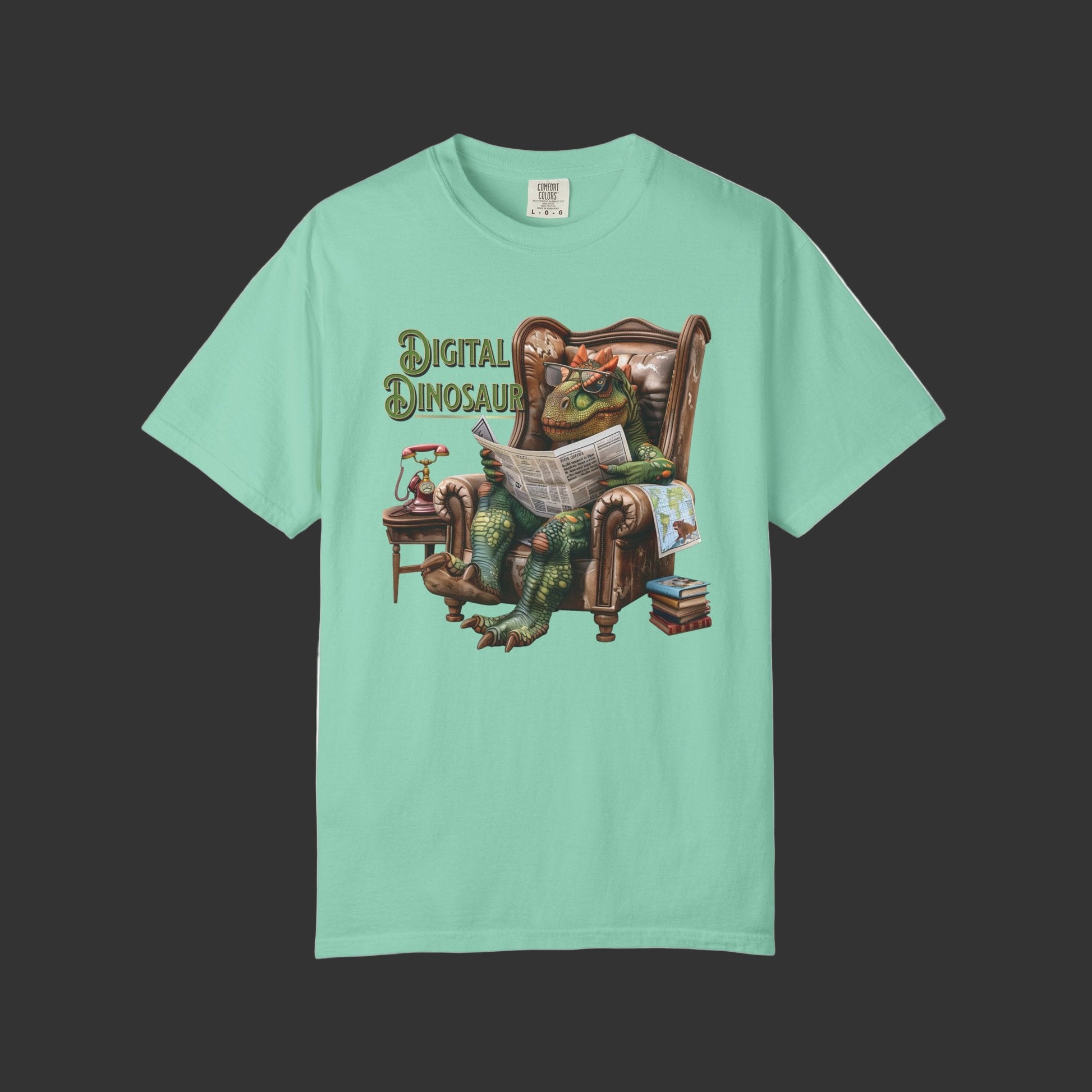 Still reading paper maps? You might be a Digital Dinosaur. This hilarious and heartwarming t-shirt features a chill dinosaur lounging in a chair surrounded by relics of the "not-so-distant past": a landline phone, paper map, newspaper, and physical books — all the essentials from a time before everything went digital. The bold text reads “Digital Dinosaur,” making it the perfect tee for anyone who prefers flipping pages over swiping screens. Whether you're a Baby Boomer, Gen Xer, proud analog advocate, or just dino-obsessed, this design blends retro charm with a wink of humor. Printed on a high-quality Comfort Colors® tee, this shirt offers a relaxed fit and soft feel — ideal for nostalgic souls who still know how to fold a road map.