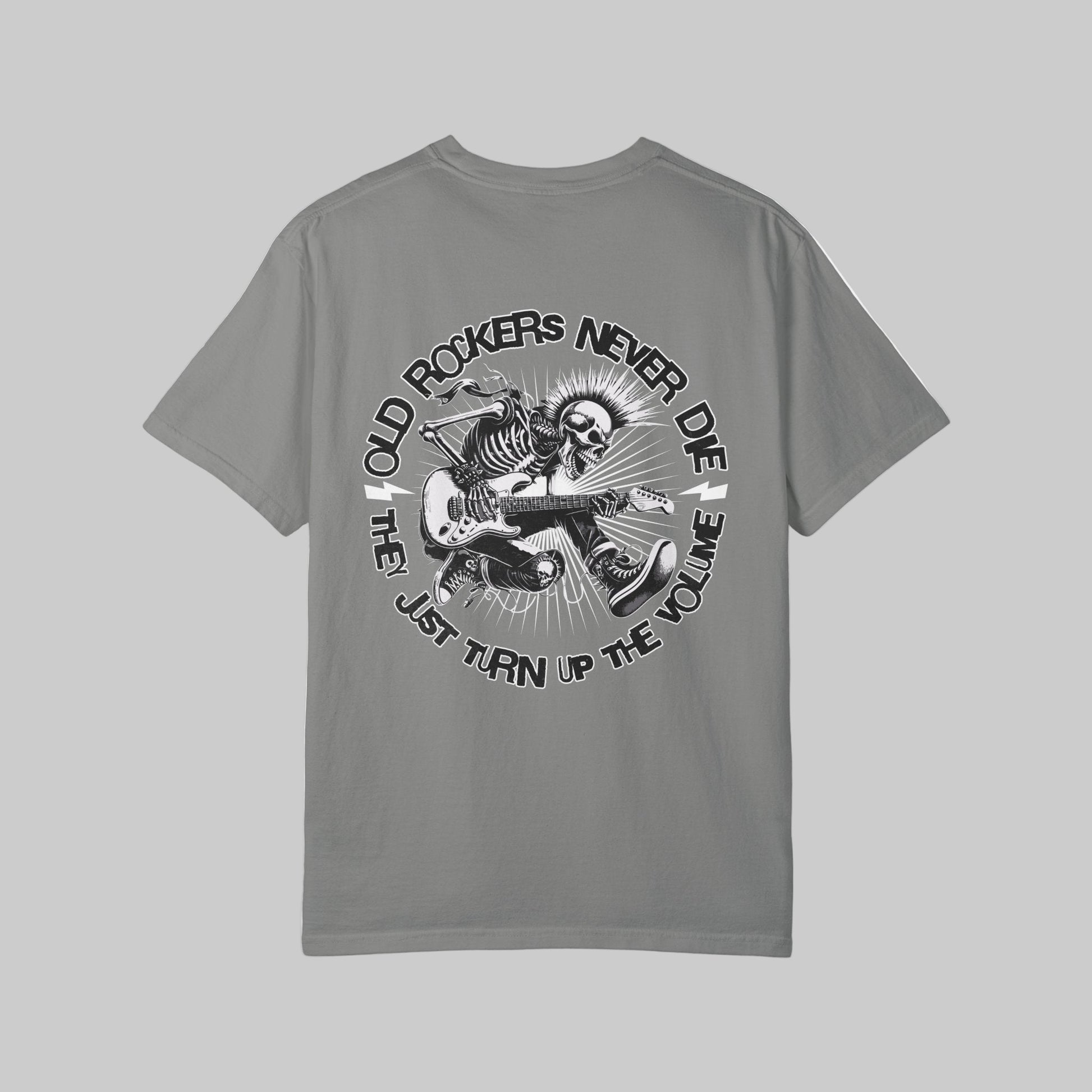 Turn up the volume and keep the rock spirit alive with this Old Rockers Never Die t-shirt! Featuring a badass skeleton shredding on an electric guitar and the words "Old Rockers Never Die; They Just Turn Up The Volume," this design is a tribute to the legends who never stop rocking. Whether you're a Baby Boomer, a Gen Xer, or just a classic rock enthusiast, this Comfort Colors® tee delivers the perfect mix of vintage vibes, soft-washed comfort, and timeless rock 'n' roll energy.