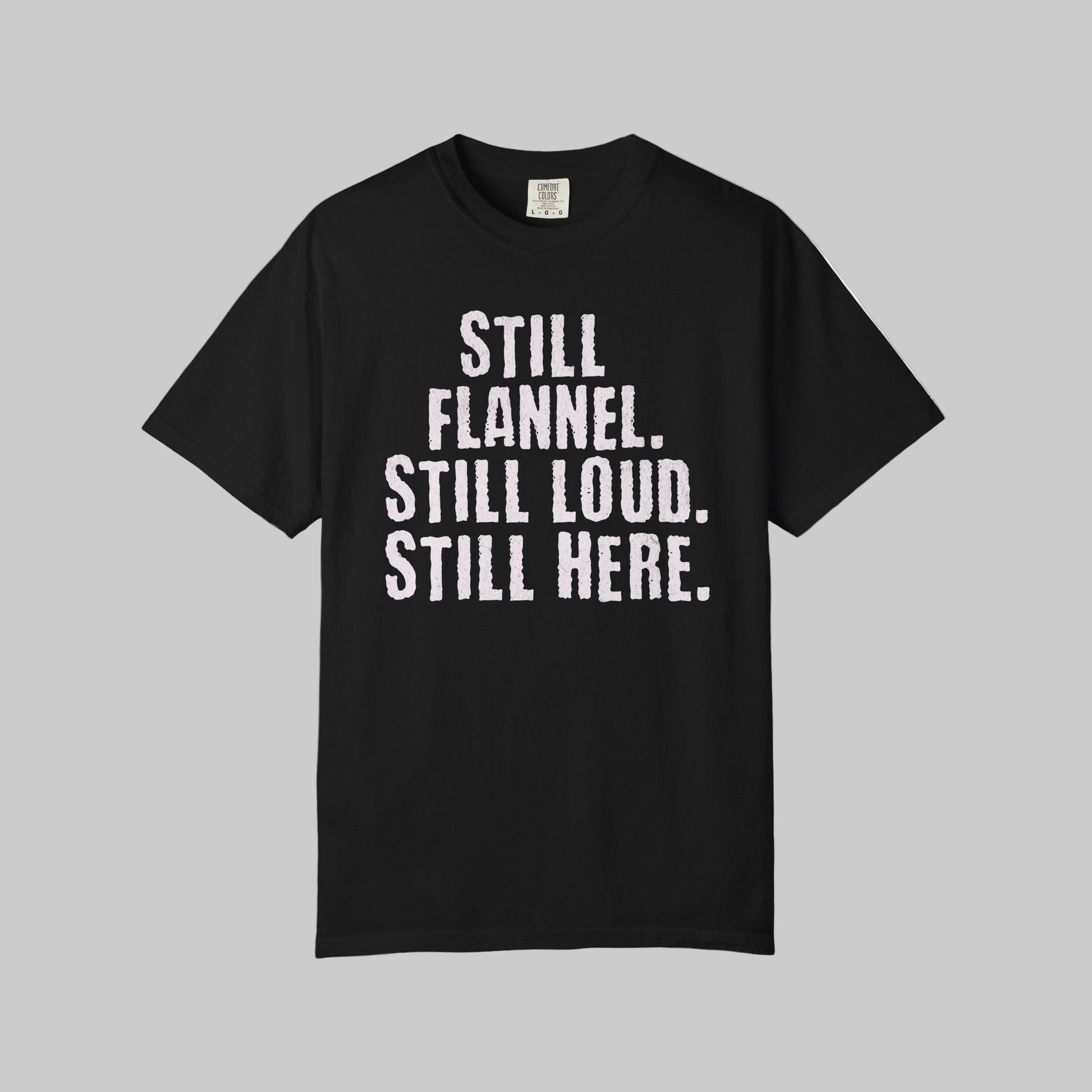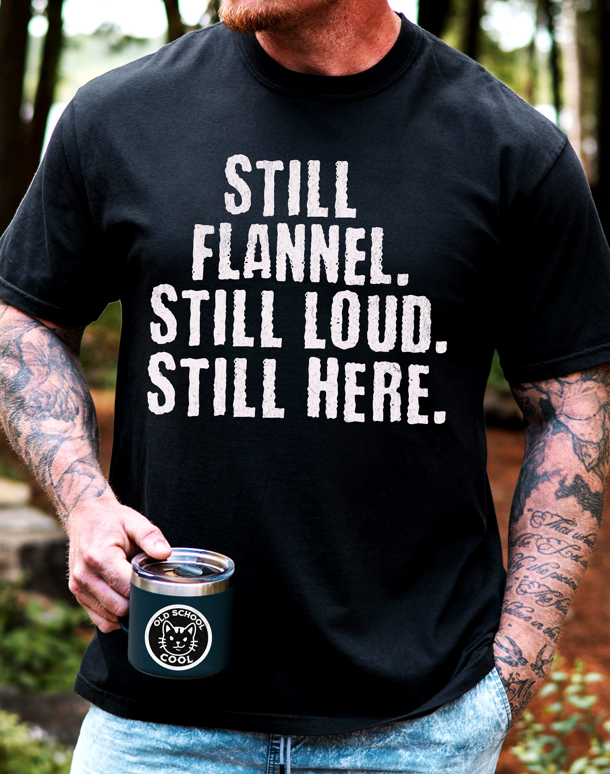 Still flannel. Still loud. Still here. This grungy, unapologetic t-shirt is a rallying cry for the originals—the ones who moshed before it was mainstream, who lived through mixtapes and teen angst, and who are still going strong. Featuring a distressed, grunge-inspired typography design, this tee brings 90s rebellion back to life—printed on the fan-favorite Comfort Colors® shirt for that vintage-washed feel you know and love. Perfect for Gen Xers, Boomers with edge, and anyone who still blasts their favorite band from the garage, car, or kitchen while parenting or grandparenting like a rock star.