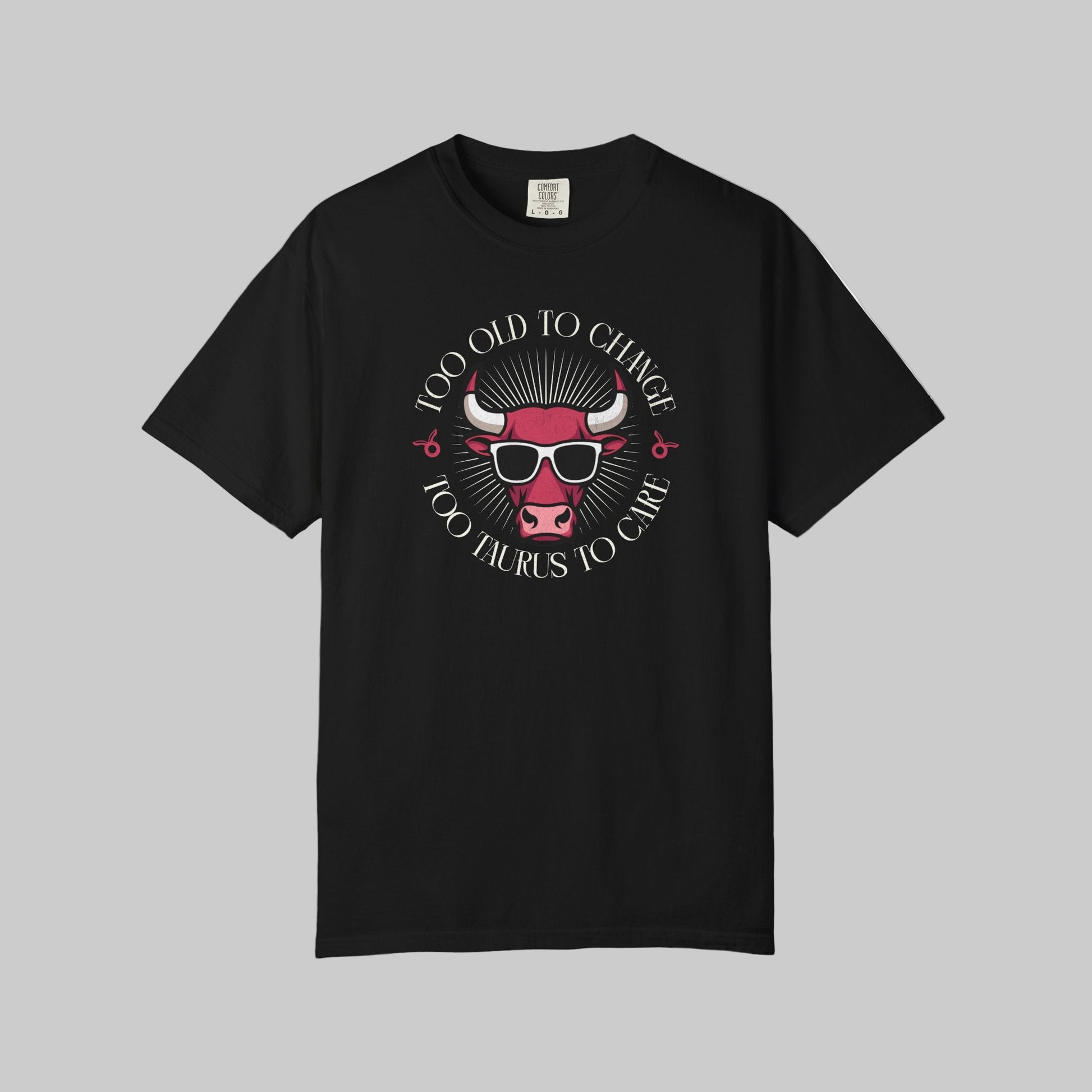 Bold, grounded, and gloriously unbothered—this Too Old to Change, Too Taurus to Care t-shirt says it all. Featuring a cool Taurus bull head in sunglasses, this design celebrates the legendary stubbornness and confidence of the Taurus zodiac in style. Printed on a super-soft Comfort Colors® tee, this shirt is perfect for any Taurus who has embraced their age, their vibe, and their ability to not give a single cosmic care.